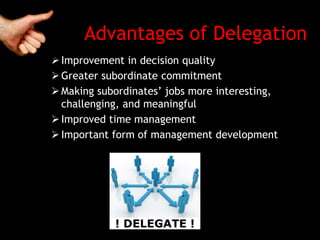 Delegation and empowerment are both effective tools for effective leadership however used for different business situations. Describe the importance of delegation and. This means the delegation of decision-making from management arena for example the use of autonomous working groups.